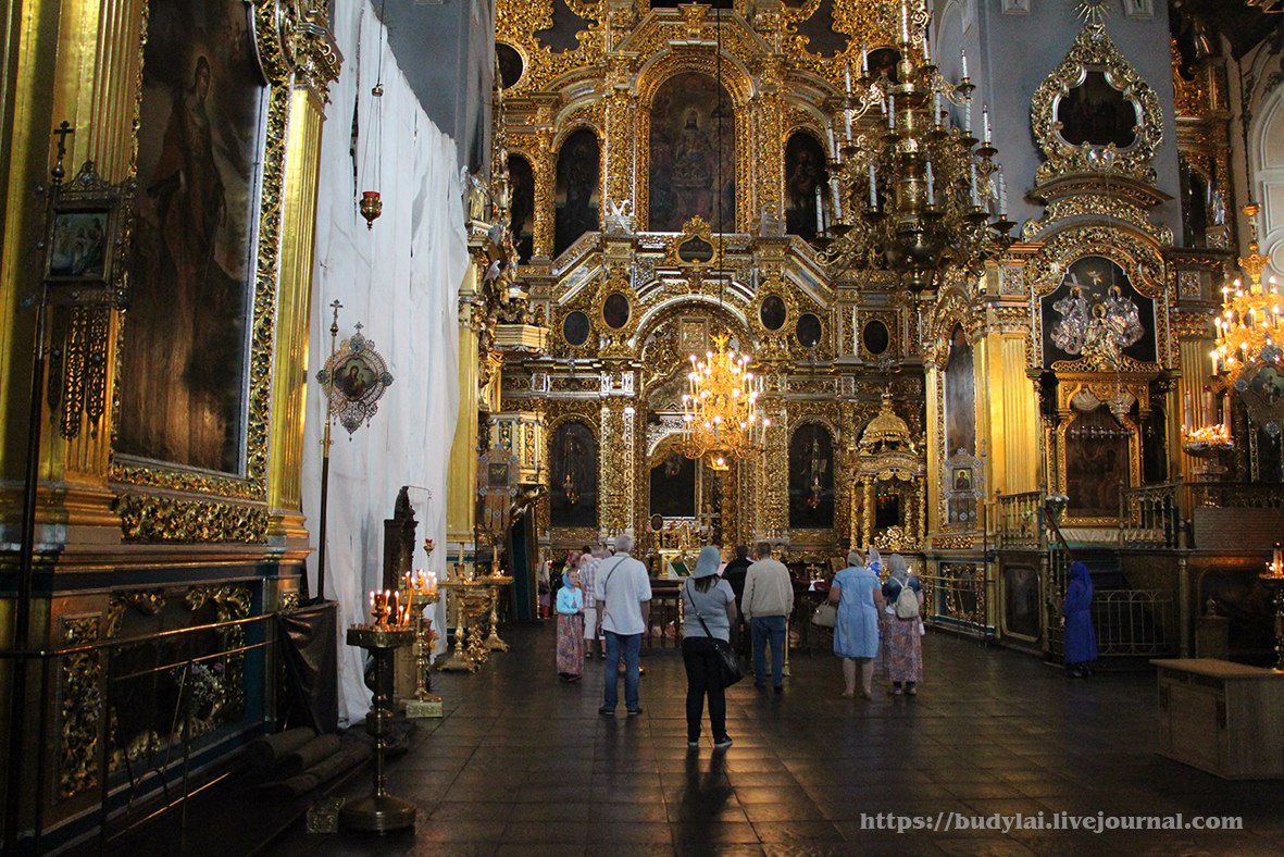 Главной святыней здесь была ико́на Бо́жией Ма́тери (Одиги́трия Смоле́нская), известная с XI века и пропавшая навсегда после оккупации города немецкими войсками. Теперь свято место в Успенском соборе занимает икона начала XVII века из храма над Днепровскими воротами Смоленского кремля. На фото это место справа, где для осмотра ее надо подняться на постамент с оградой.